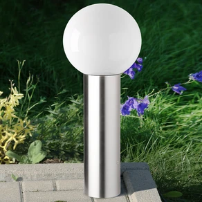 Esta é uma versão popular do candeeiro de pé: A moldura é coroada por uma esfera luminosa - em branco opalino, cria uma impressão particularmente bonita. A luz é, assim, suavemente sem reflexos. O ambiente é iluminado de forma homogénea e parece imediatamente muito mais convidativo. Os candeeiros de pé com abajures esféricos de vidro causam uma impressão de classe não só na extremidade dos caminhos, mas também nas paredes e noutras elevações. Outra variante popular: apenas a bola sem a moldura.