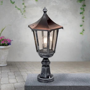 Como o nome sugere, as luminárias de pedestal ficam preferencialmente sobre pedestais. Mas também se contentam com muros, terraços e caminhos. Não só criam um ambiente bonito no jardim, como também ajudam na orientação. Com uma altura de 40 a 50 centímetros**, podem ser descritas como "os anões da iluminação exterior". Mas como raramente estão no chão, estão a competir com confiança com os seus irmãos mais velhos, os faróis de mastro. Assim, a pequena lâmpada de lagarta colocada num plinto tem um efeito de iluminação semelhante ao de um candelabro imponente.