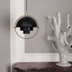 As luminárias suspensas são penduradas de forma a que se possa ver completamente a pessoa à nossa frente e, ao mesmo tempo, não haja o risco de bater com a cabeça quando nos levantamos. Isto significa que deve haver uma distância de 80 a 100 cm entre o bordo inferior do candeeiro suspenso dourado e o tampo da mesa.