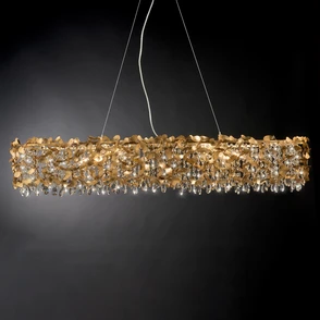 Que candeeiro de suspensão dourado se adequa a que forma de mesa?