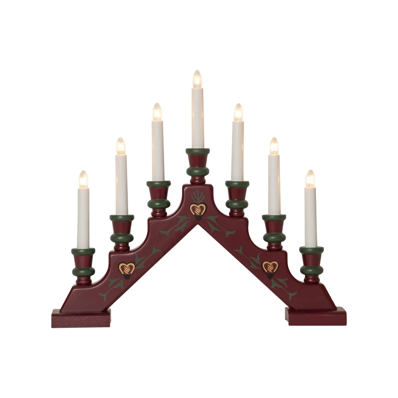 Arco de luzes Sara, vermelho, madeira, 43 cm de largura, 7 lâmpadas, E10
