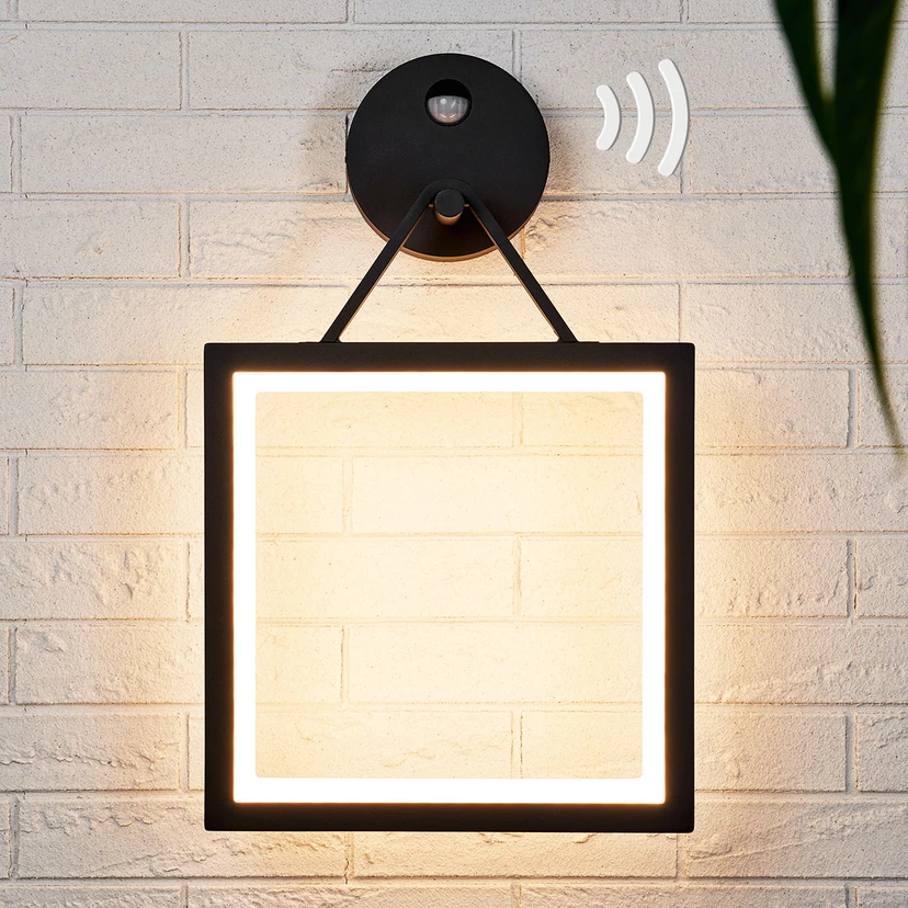 Candeeiro de parede exterior Mirco LED em forma de moldura com sensor integrado para controlo inteligente da luz Este candeeiro de parede exterior já é um belo destaque visual, porque, juntamente com o suporte de parede, a sombra em forma de moldura evoca associações com uma moldura, resultando numa linguagem formal orientada para o design que é definitivamente apresentável e digna de ser vista. A faixa de luz LED está localizada no interior da moldura, criando um padrão de luz agradável com um efeito de baixo brilho. O detetor de movimento integrado permite uma resposta adaptada à situação, uma vez que a luz exterior só se liga quando é detectado movimento nas imediações. Dados do sensor: - Alcance 6-10 m - Ângulo de deteção 120° - Altura de montagem 0,7-2,5 m - Duração da luz ajustável (5 s - 10 min)