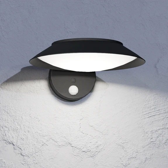 Candeeiro de parede LED solar Cerrisi, largura 10,5 cm, preto, sensor