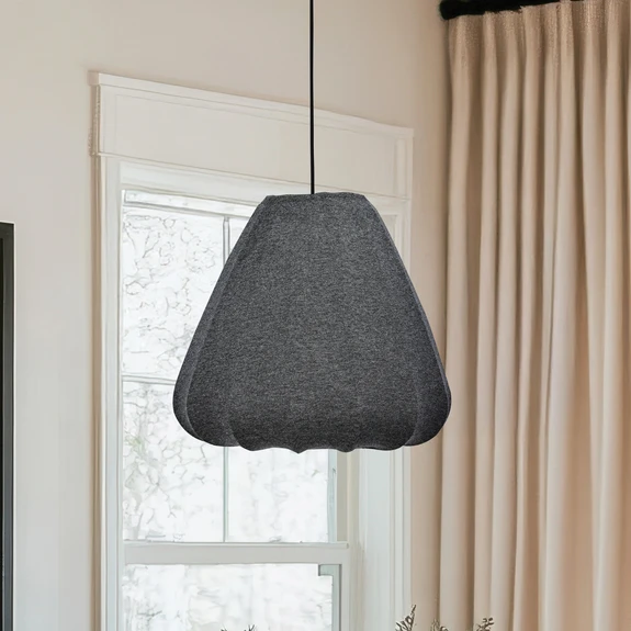 Candeeiro de suspensão Barlaston, Ø 35 cm, preto/cinzento, metal, tecido