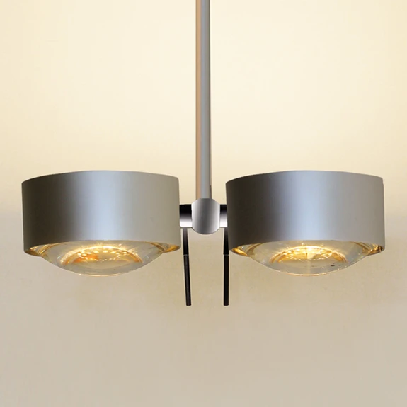 Candeeiro de teto PUK SIDES com tonalidades variáveis A particularidade do candeeiro de teto PUK SIDES é que está equipado com uma lente de vidro num dos lados de cada abajur, que focaliza a luz e a emite para a sala com grande efeito. A outra face está equipada com um vidro branco fosco. Atenção: a imagem é um exemplo de uma versão com um filtro de cor. Os filtros de cor estão disponíveis opcionalmente como acessórios. São inseridos entre a caixa da lâmpada e a lente e criam belos efeitos de cor em vermelho, magenta, amarelo, azul ou verde. Os candeeiros exclusivos deste fabricante são produzidos na Alemanha e caracterizam-se por elevados padrões de qualidade e design inovador.