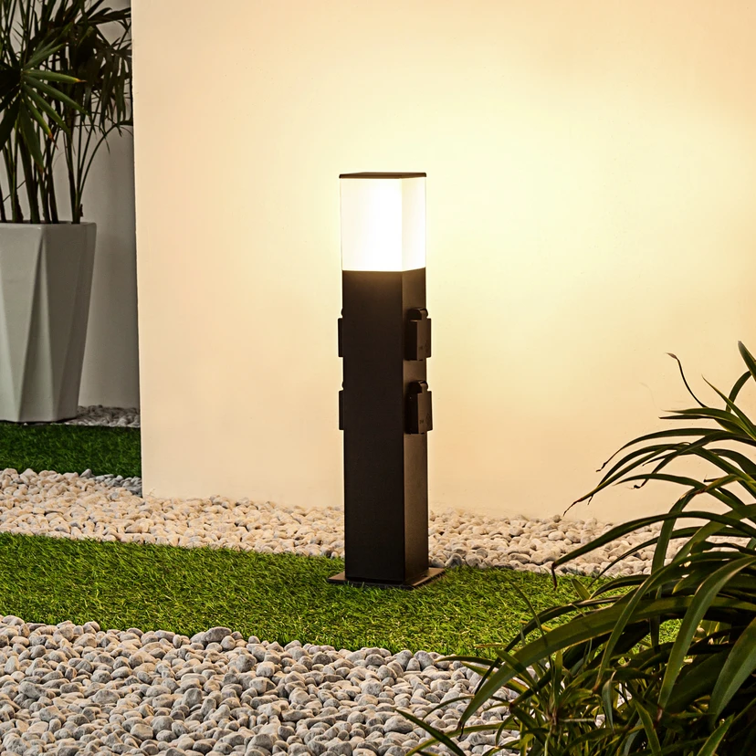 Candeeiro pilar angular Ayanis com quatro tomadas, um complemento prático para o exterior