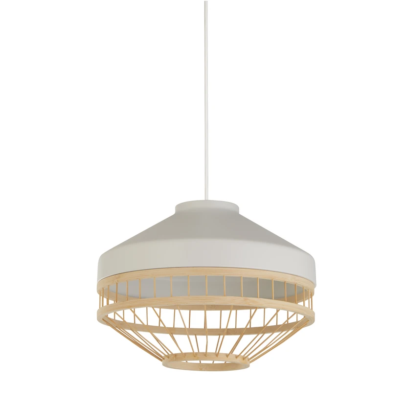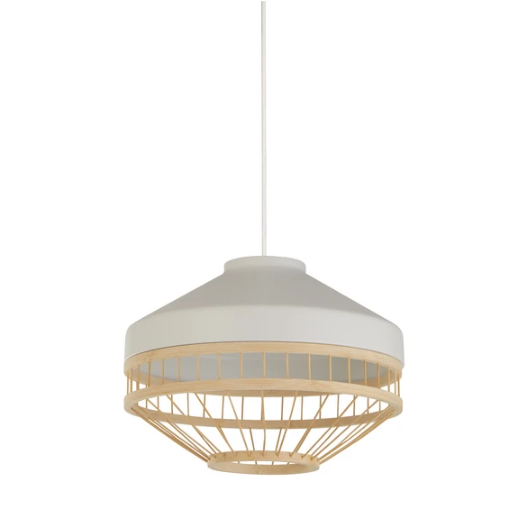 Candeeiro suspenso Lanya com abajur branco e elemento em bambu
