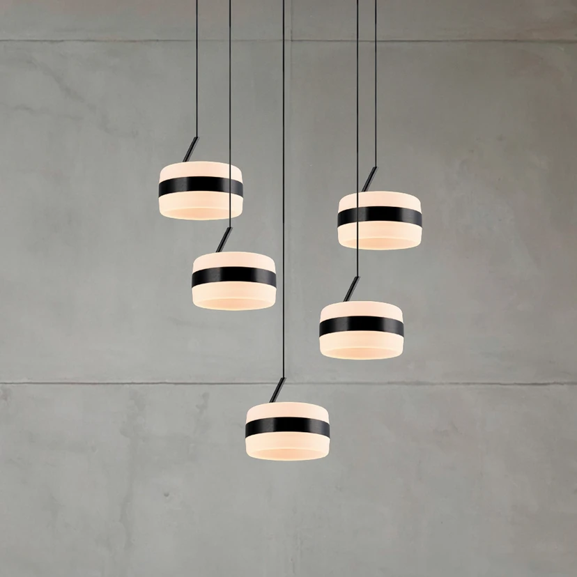 Candeeiro suspenso LED redondo com cinco lâmpadas Dios - preto mate