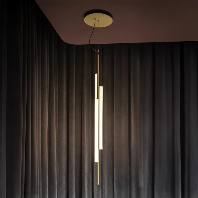 Tem um regulador de intensidade integrado no cabo da ficha. Fabricada na Europa, o candeeiro é sinónimo da mais alta qualidade de acabamento e design sofisticado, concebido por Ciszak Dalmas. A combinação de forma estética e precisão técnica torna o candeeiro suspenso LED Ambrosia um destaque em qualquer divisão.