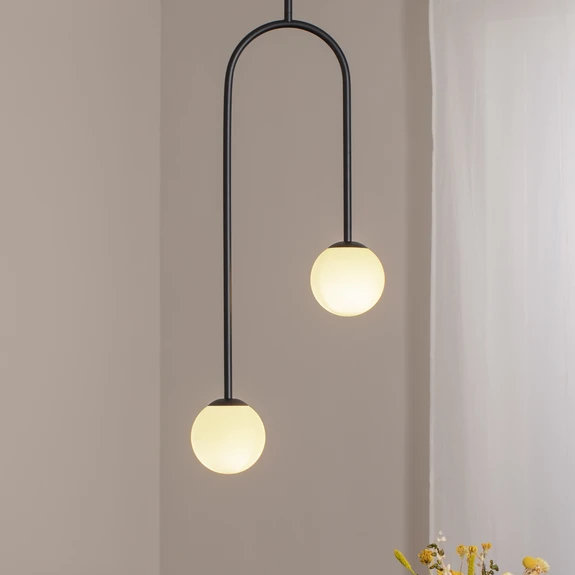 O candeeiro suspenso Nave combina um design elegante com materiais de alta qualidade, como metal e vidro, para oferecer uma solução de iluminação impressionante. Com a sua construção de duas lâmpadas, proporciona uma distribuição de luz uniforme e agradável em salas de jantar, salas de estar e cozinhas. A combinação de acabamentos em preto e branco confere ao candeeiro uma elegância intemporal que se integra perfeitamente em vários estilos de decoração.