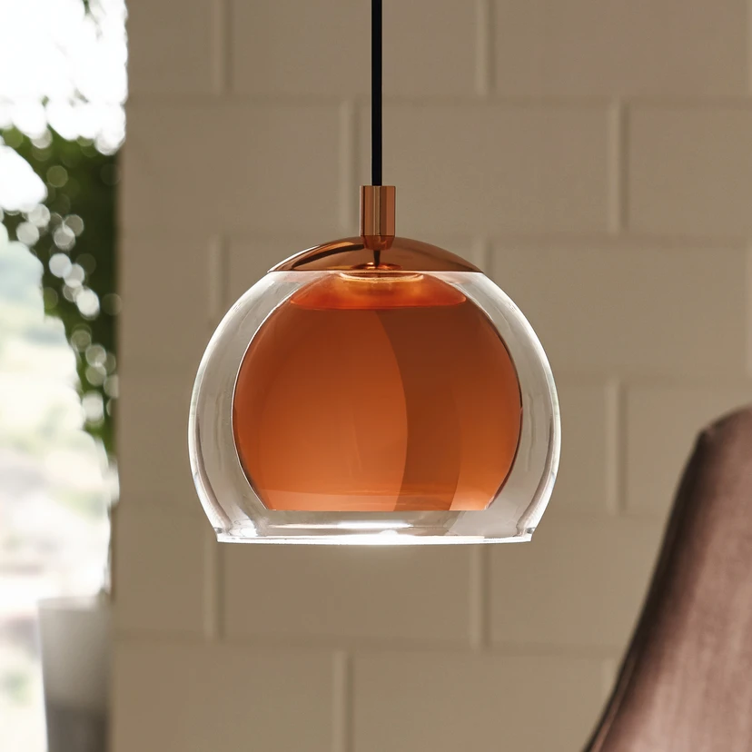 Candeeiro suspenso Rocamar 1-luz em cobre