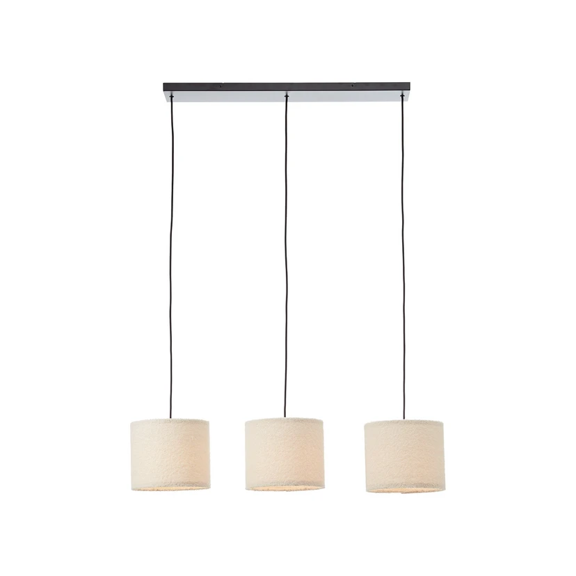 Candeeiro suspenso Teddy, comprimento 98 cm, bege, 3 lâmpadas, tecido/metal