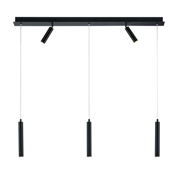 Candeeiro suspenso Tom num design chique com controlo remoto para regulação da intensidade da luz O elegante candeeiro suspenso Tom dá a todas as salas de estar e de jantar um brilho muito especial. A estrutura em aço inoxidável é constituída por um elemento alongado ao qual estão fixados três abajures para iluminação direta da mesa e dois projectores adicionais, que são montados entre as três luzes e proporcionam uma iluminação adicional da divisão. O Tom integra-se bem em estilos de mobiliário modernos e, com a sua decoração carateristicamente elegante, é um verdadeiro HighLight por cima de qualquer mesa de jantar. Com os seus três abajures pendurados simetricamente, o Tom proporciona uma luz quente e cria uma atmosfera convidativa e acolhedora. O controlo remoto que o acompanha permite também regular e variar continuamente a luminosidade dos LEDs, conforme necessário, facilitando a definição das condições de iluminação desejadas.