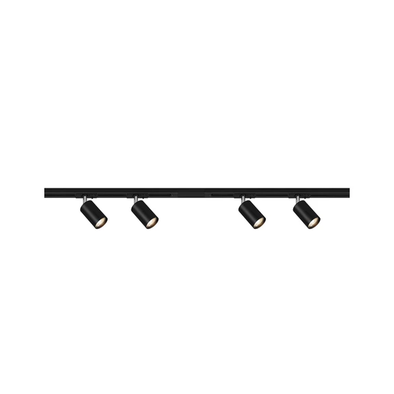 O kit inicial do sistema de calhas convence pela sua estética clara e moderna. A superfície preta mate confere ao sistema uma elegância intemporal, que se integra perfeitamente em diferentes áreas da casa, como a sala de estar, a cozinha ou o corredor. Os quatro focos para lâmpadas GU10 proporcionam uma iluminação direcionada, ideal para realçar móveis ou decoração.