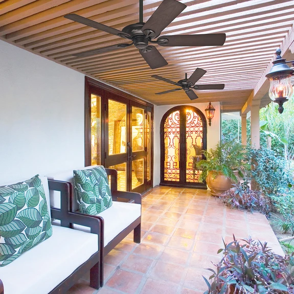 Ideal para pátios e áreas exteriores - a ventoinha de teto Maribel A ventoinha de teto Maribel, de design intemporal, foi especialmente concebida para utilização no exterior. As suas cinco pás de plástico resistentes à água são decoradas com um elegante acabamento em nogueira. A caixa a condizer é resistente às intempéries, à prova de ferrugem e pintada numa elegante cor castanha escura. O ventilador também pode ser instalado em superfícies inclinadas. Inclui uma função de avanço e recuo, que pode ser controlada através de um interrutor de tração. O ventilador também pode ser controlado através de uma corrente de tração. É possível escolher entre quatro níveis de velocidade diferentes. Como opção, o controlo pode ser adaptado com um interrutor de parede (disponível como acessório). Dados técnicos Potência por velocidade: - 17 watts a 84 rpm - 46 watts a 151 rpm - 67 watts a 193 rpm Características especiais É possível adaptar iluminação. As luzes adequadas estão disponíveis como acessórios.
