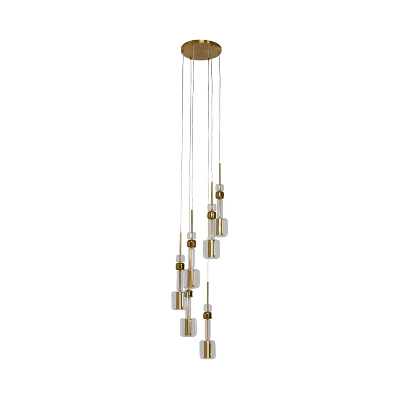 Kare Candy Bar candeeiro suspenso, cor de ouro, aço, vidro, 6 lâmpadas.