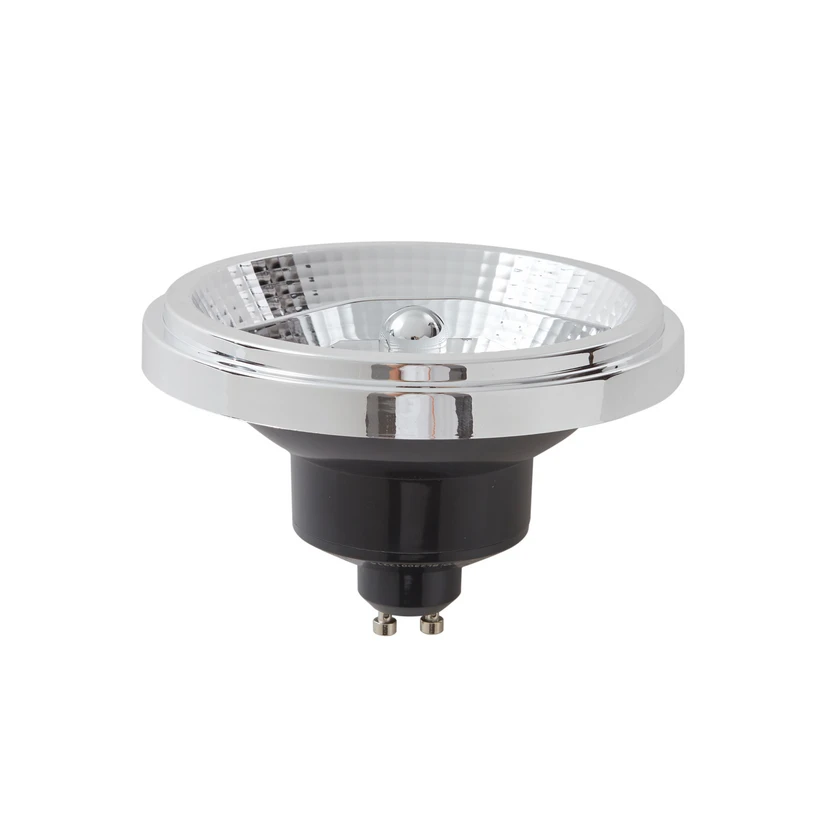 O refletor LED AR111 regulável com base GU10 emite uma luz branca quente e a sua intensidade pode ser regulada com um regulador de intensidade externo (Triac).