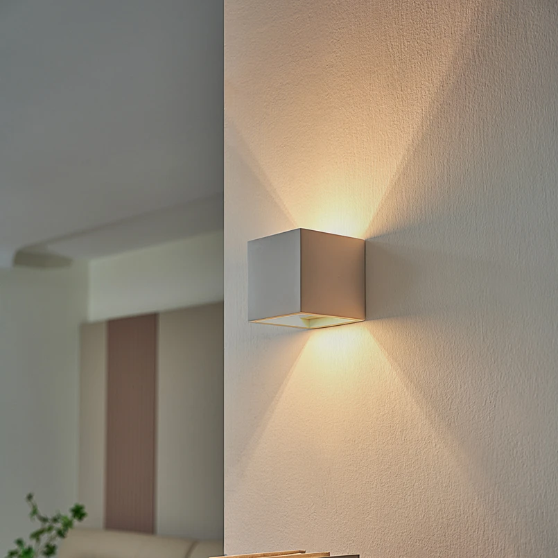 Candeeiro de parede Freja pintável em forma de cubo É frequente escolher uma determinada cor de parede e querer projetar a iluminação numa cor correspondente, mas simplesmente não consegue encontrar o que procura e, por isso, recorre a cores simples e intemporais, como o branco e o prateado. Claro que não há nada a dizer contra esta opção, que promete uma elegância discreta e um prazer duradouro - este candeeiro de parede é também uma excelente escolha. No entanto, o facto de ser feito de gesso abre opções completamente novas, uma vez que pode ser pintado diretamente na cor desejada, integrando-se assim perfeitamente no conceito de divisão existente. É claro que a mesma cor não é a única opção de design; pelo contrário, o candeeiro também pode ser pintado de forma a destacar-se do resto da divisão e a ser um belo chamariz, quer seja liso ou multicolorido com um motivo especial - aqui não há limites para a criatividade!
