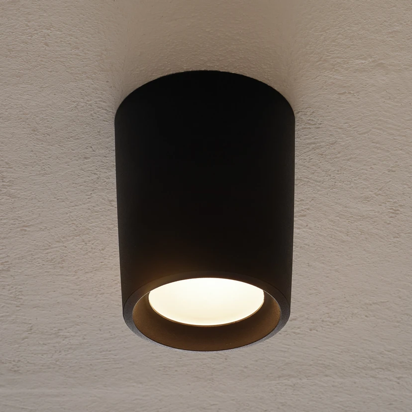 Candeeiro de teto LED Livia - luz descendente potente para interiores e áreas exteriores cobertas Aparência contida, luz potente - Livia impressiona como uma luz descendente eficaz para uma vasta gama de conceitos de design de interiores. A luz branca quente do Lamp E27 mate fornecido é emitida através de um difusor de policarbonato fosco como luz direta uniforme para a sala. O candeeiro de teto em resina fundida monocromática também pode ser utilizado debaixo de coberturas Gross, em carports, etc. - Fornecido com fonte de luz substituível