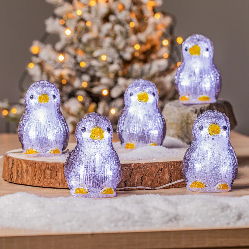 Fadas decorativas Pingo LED com pequenas figuras de pinguins As fadas decorativas Pingo LED com as suas bonitas figuras de pinguins são a escolha perfeita para decorações de inverno no interior e no exterior. As luzes LED estão embutidas nas figuras e fazem-nas brilhar. Seja na sala de estar, no jardim de inverno ou - graças ao grau de proteção IP44 - no pátio, as luzes de fadas Pingo criam sempre uma atmosfera quente e acolhedora. As luzes de fadas são a escolha perfeita para criar um ambiente acolhedor no inverno e dar um toque especial à época festiva - incl. função de temporizador