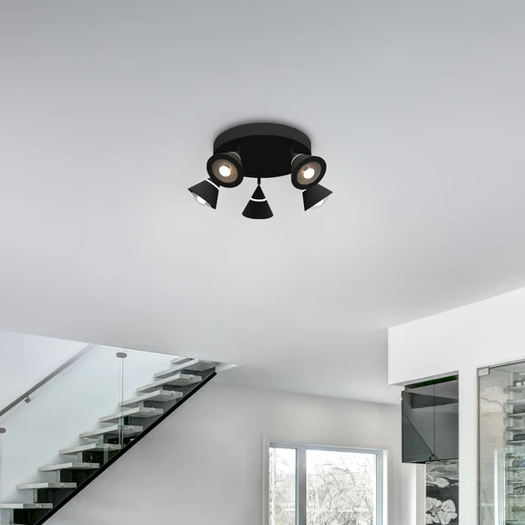 Em preto: projetor de teto LED Romeo com cinco lâmpadas e temperatura de cor ajustável