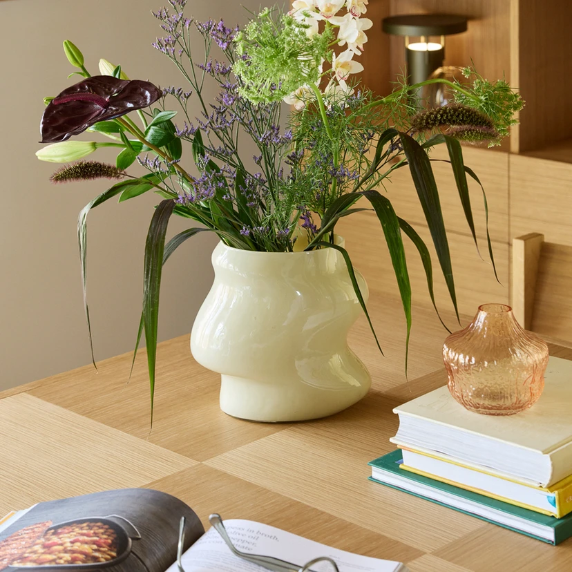 A combinação de linhas simples e da paleta de cores suaves torna o vaso num elemento decorativo versátil. Seja sozinho ou com arranjos florais – confere a qualquer espaço um toque especial.